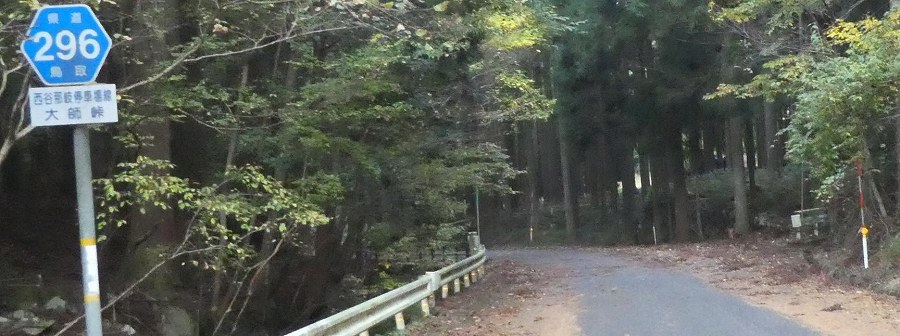 鳥取県智頭町西谷と大屋の間にある県道296号・西谷那岐停車場線にある峠。 鳥取自動車道や国道373号線が通る千代川の谷の山郷駅付近から県道7号線に入る。 |