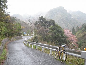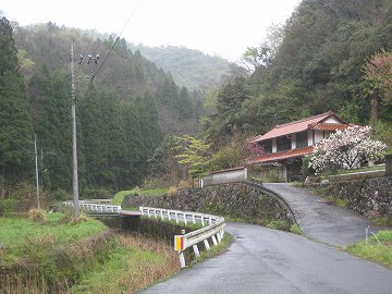 川に沿って谷へ入る。最後の民家?は中国地方特有の赤い瓦屋根だった。もちろん道はここから1車線になった。