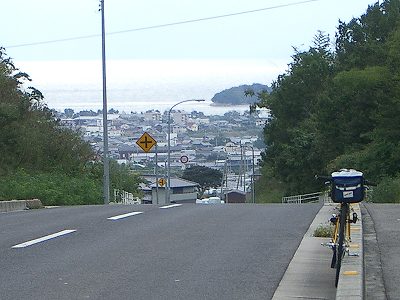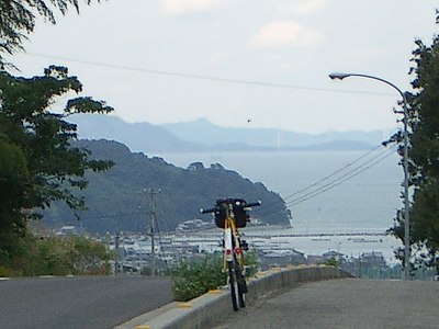 詫間町側からアプローチする。峠道からは抜群に海が見える。海が見える