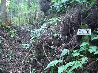 | 分岐を真っ直ぐ登る | 登山道の標柱 | |