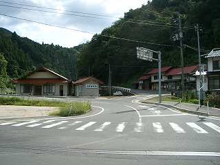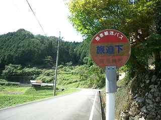 峠の麓、旅迫の集落。羽須美村の患者輸送用バスの停留所が風情を感じさせる。 | |