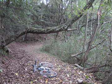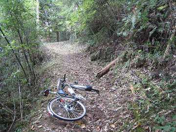下りといっても、ゆったりとした傾斜だし、落ち葉ふかふか道なので、乗ってもとばせない。湿地のようなところとか落ちている小枝が車輪にからまったり、乗車するには不安定である。