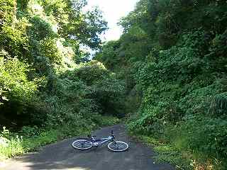 峠下の田圃などを見ながら登っていくうち10分ほどで峠に着いた。しかし堀之内町側の道は全く自然に還っていて、自転車付きで踏破することはできなかった。