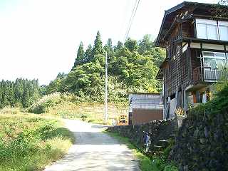 トンネル横の家の裏を通って峠へ登る。道は一車線。スイッチバックしながら登っていく。集落からもう一本登ってきた道と途中で合流する。 | |