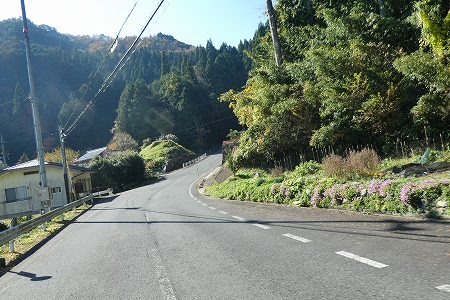 | 県道(右折)へ | 4百番台の県道なのにセンターライン |
