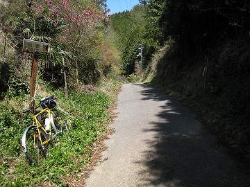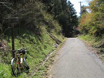 | 県道220号線に入ってすぐに分岐があるので、左折して峠へ向かう | 峠の集落・満穂(みつほ)で左から本来の旧道が合流してくる。 |