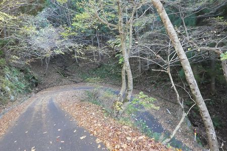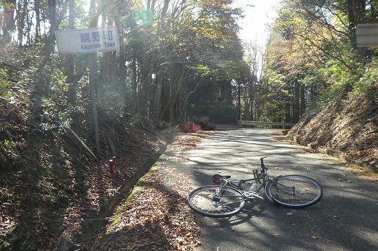 狭い峠道を4〜500mも登ると峠に到着。峠は真庭市と鏡野町との境界になっていて、少しだけ道幅が広がったような気がした。電波が届いてないようでGPSは拾っても地図画像が出てこない。