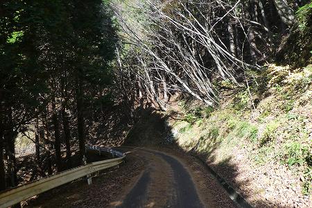 岡山県真庭市蒜山下和と鏡野町富西谷の間にある県道65号久世中和線の峠。 国道482号線から分れて県道65号線に入り、植杉川の谷を遡る。一の茅付近に 『4t車以上通行注意、これより先 道路がせまいため4t車以上は通り抜け出来ません』 の看板が現れた。 |