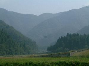 南条町の南条ウォーターワールドに車をデポして走り出す。武周ヶ池入り口の立て看板などを横目に見ながら牧谷を遡る。武周ヶ池の立て看板がある辺りから峠が見える