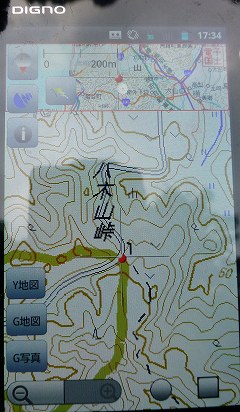 | 少し傾斜がきつくなった | 右から道が来て | |
