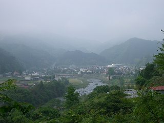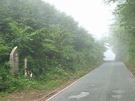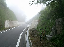 ・ | 日野町黒坂から溝口町へと越える峠。 山霧?に煙る町、黒坂から登り出す。峠へ登る谷筋は地図では急には見えないが、道は町はずれからいきなり山際をクネクネと登り出す。谷底平野の端、山との境目を丹念に縫って走っているようである。 |