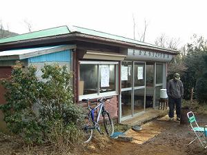 | 峠には茶屋があって、休憩ができるようテーブルセットが出してあった。茶屋の主人は登山者のため?にドラム缶でたき火をしていたし、先客の中年カップルが休んでいた。 | ・ | ![]() |