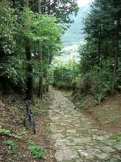 ここから本格的な石畳が始まる。神木(こうのぎ)流紋岩を使った美しい石畳だそうだが、やはり滑りやすくて、びびった。 ・