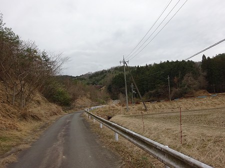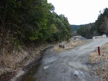 ガードを潜って反対側に出ても舗装は続いているが、道は汚くなってくる。謎の廃屋を過ぎて、カーブを曲がるとダート出現。