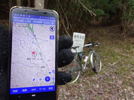 間もなく高速道のトンネル上に至る。安国寺ICの出入口が見える。登ってる最中にそんなものを見てる余裕はないが、写真にはちゃんと写っているのだ。峠道をしばらく登ると『横峠古道』の看板が現れる。明治20年以前は古道がメインだったようだ。